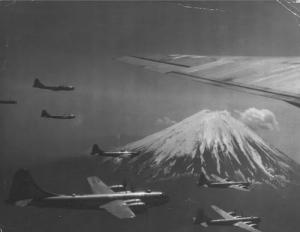 Harassed and groggy after ever-increasing aerial blows, residents of Japan’s main cities once more sought shelter underground this week as Super-Forts rode high and unchallenged over the island kingdom. But, for once, the giant planes did not only unleash cargoes of flaming death. Huge paper bombardments also rained down on the cities, spraying millions of propaganda leaflets over wide areas.