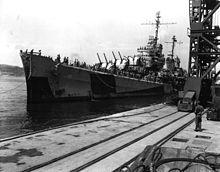 The second USS San Diego (CL-53) was an Atlanta-class light cruiser of the United States Navy, commissioned just after the US entry into World War II, and active throughout the Pacific theater. Armed with 16 5 in (127 mm)/38 cal DP anti-aircraft guns and 16 Bofors 40 mm AA guns, the Atlanta-class cruisers had one of the heaviest anti-aircraft broadsides of any warship of World War II.