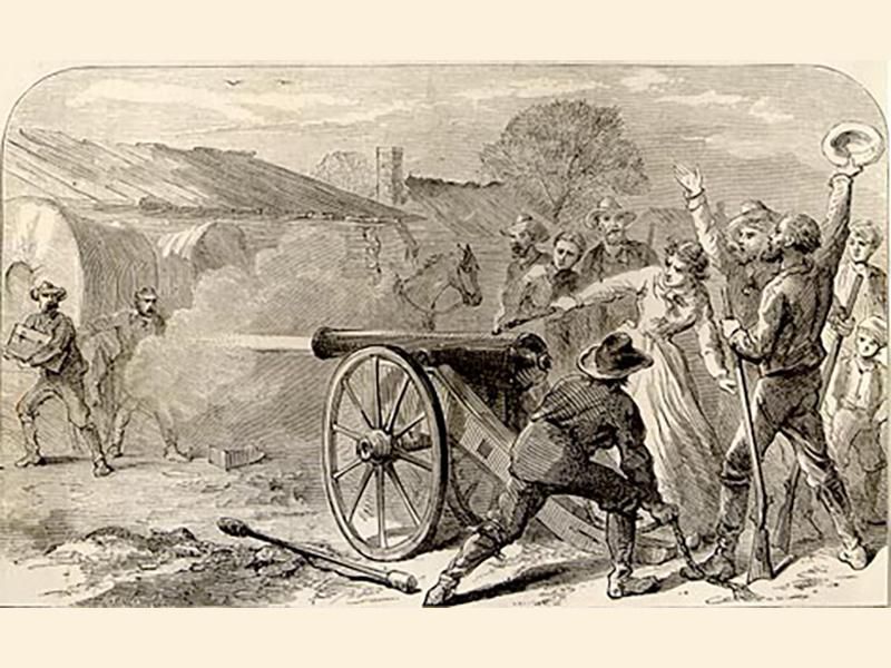 According to Winfrey’s history, on Austin’s main thoroughfare, Congress Avenue, sat a loaded six-pound howitzer loaded with grapeshot—a remnant from the Republic’s earlier wars with Native Americans. She turned the muzzle toward the Land Office and “applied the torch, and the cannon was discharged,” according to D.G. Wooten, author of A Complete History of Texas.