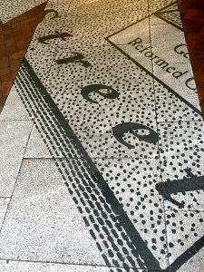Broad Street’s few remnants of eighteenth century architecture can actually be found right across the street from Fraunces Tavern. Although the Goldman Sachs building that sits at 85 Broad destroyed part of the historic Stone Street, its construction also revealed the foundations of a tavern that predates Fraunces. The Lovelace Tavern was built in 1641 and its foundations can still be viewed through some unique glass windows strategically placed on the street. The building’s plaza is also decorated with a recreation of an eighteenth century British map of the area that outlines nearby streets and landmarks, some of which are still there today.