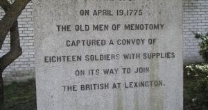In his 1864 address West Cambridge on the Nineteenth of April, 1775, Samuel Abbott Smith told the story of six regulars surrendering to “Mother Batherick” after the supply wagon they were rolling west was attacked.