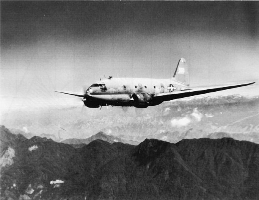 A C-46A en route to China over the Himalayas. The job started with the 10th Air Force and morphed until the China National Aviation Corporation was carrying most of the cargo (U.S. Air Force photo)
