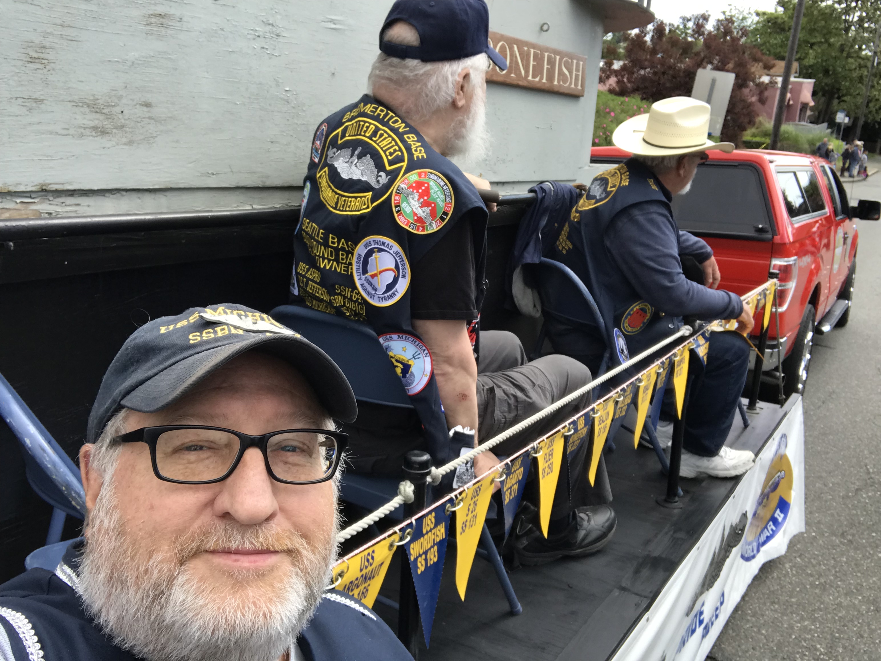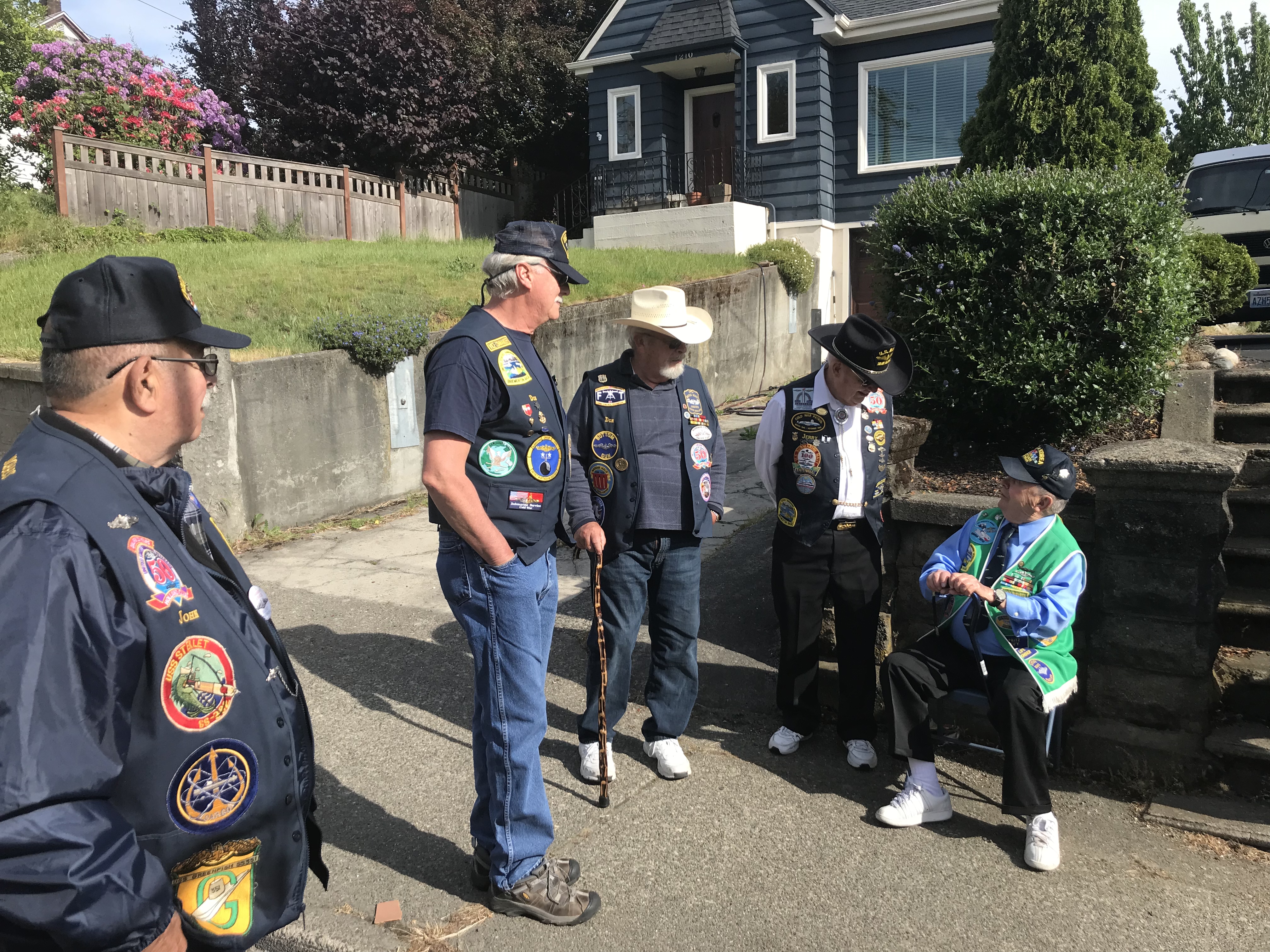 It’s a just a bunch of Submarine Vets sitting around, shooting the breeze before the 2019 Armed Forces Day Parade in Bremerton, WA.