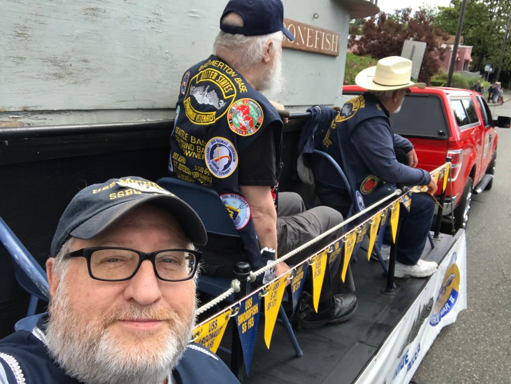 We walked along the parade route, the aches and pains of age slowing us down, waving to those who shouted to us their “Thank you for your service!” cheers. There were smiles, and there were salutes. There were jokes about our marching. We’re Submariners, we never could march in a way that impressed anybody.