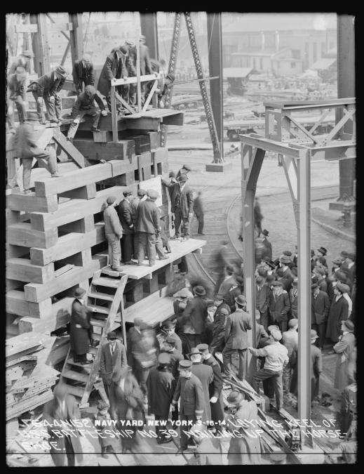 The second ship of the Pennsylvania-class, Arizona‘s keel had been laid on 16 March 1914 with then-Assistant Secretary of the Navy Franklin Delano Roosevelt in attendance. The ceremony included FDR closely observing the nailing up of the ship’s good luck horseshoe.