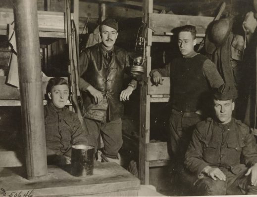 This view inside the boxcar quarters of troops of the American Expeditionary Forces, North Russia, who are fighting the Reds along the line of the Vologda railway in early 1919, shows something interesting in the center– a Mosin-Nagant M91 complete with dog collar-style sling.