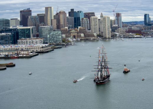 Official caption: BOSTON (Oct. 18, 2019) USS Constitution is tugged through Boston Harbor during Constitution’s birthday cruise. Constitution got underway to celebrate the ship’s 222nd. birthday and the Navy’s 244th birthday.