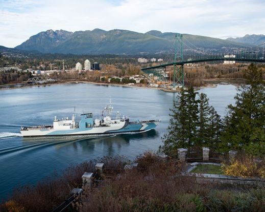 HMCS Regina, a Halifax or City-class frigate seen earlier this month passing under the Lion’s Gate Bridge, Vancouver: