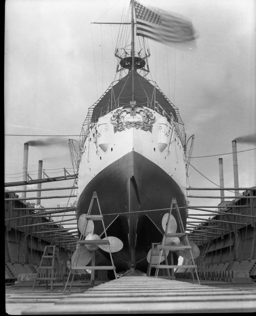 OLYMPIA’s propellers photographed in a floating drydock in 1904