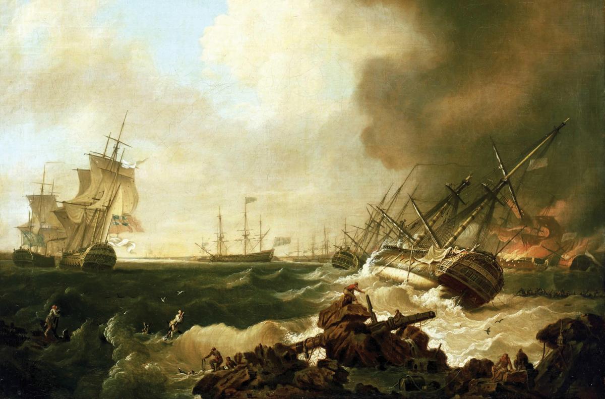 The rest of the contest devolved into a melee of isolated single-ship actions, with British historian Geoffrey Marcus noting the “many thousands of spectators who had run out from Croisic and the surrounding villages.”18 Ships crashed into rocks, ran aground, and collided with each other as the French tried to form a defensive line and the British ships, “swarming around them like wolves around sheep,” prevented them from doing so.19