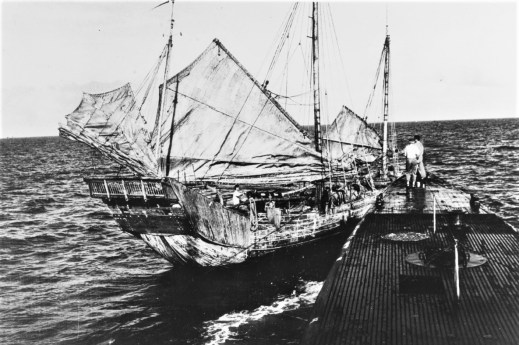 Here we see the bow of the Balao-class fleet boat USS Bullhead (SS-332)approaching a Chinese junk to pass food to its crew, during her first war patrol, circa March-April 1945. Of the 52 American submarines on eternal patrol from World War II, Bullhead was the final boat added to the solemn list, some 75 years ago this week. In another grim footnote, Bullhead was also the last U.S. Navy vessel lost…
