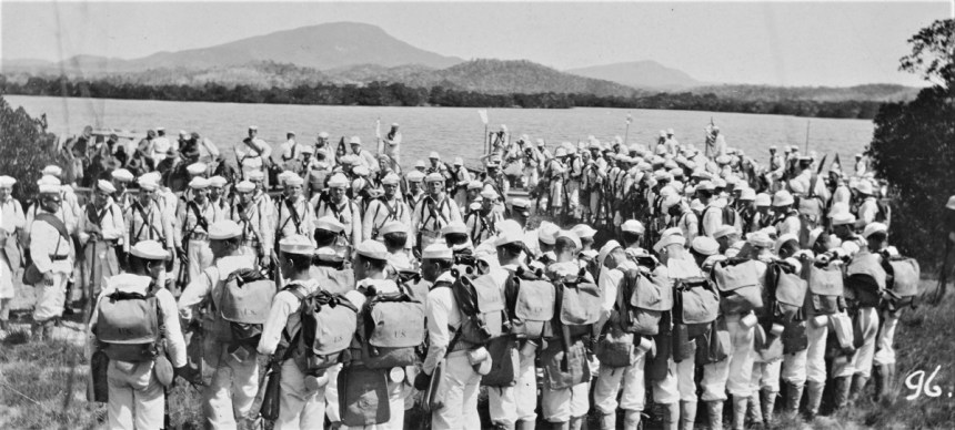 For reference: Atlantic Fleet sailors in formation at Guantanamo Bay, Cuba, landing force drill, circa 1909, complete with packs and rifles.