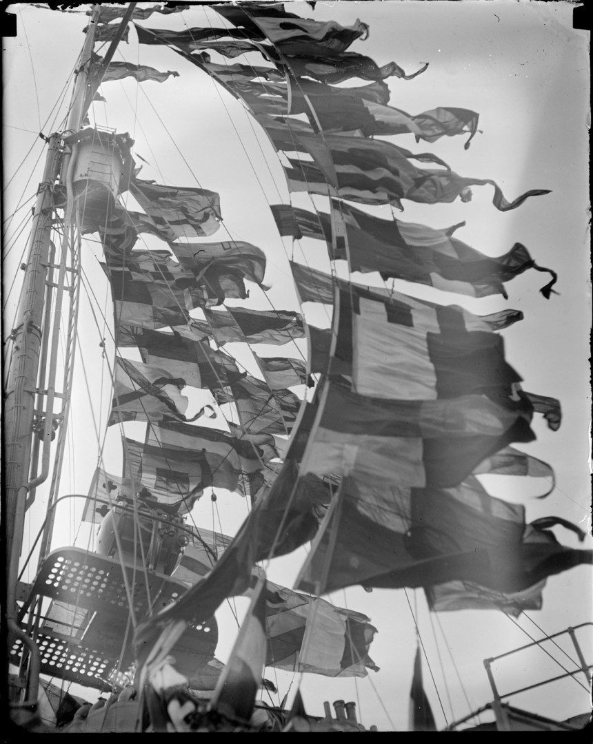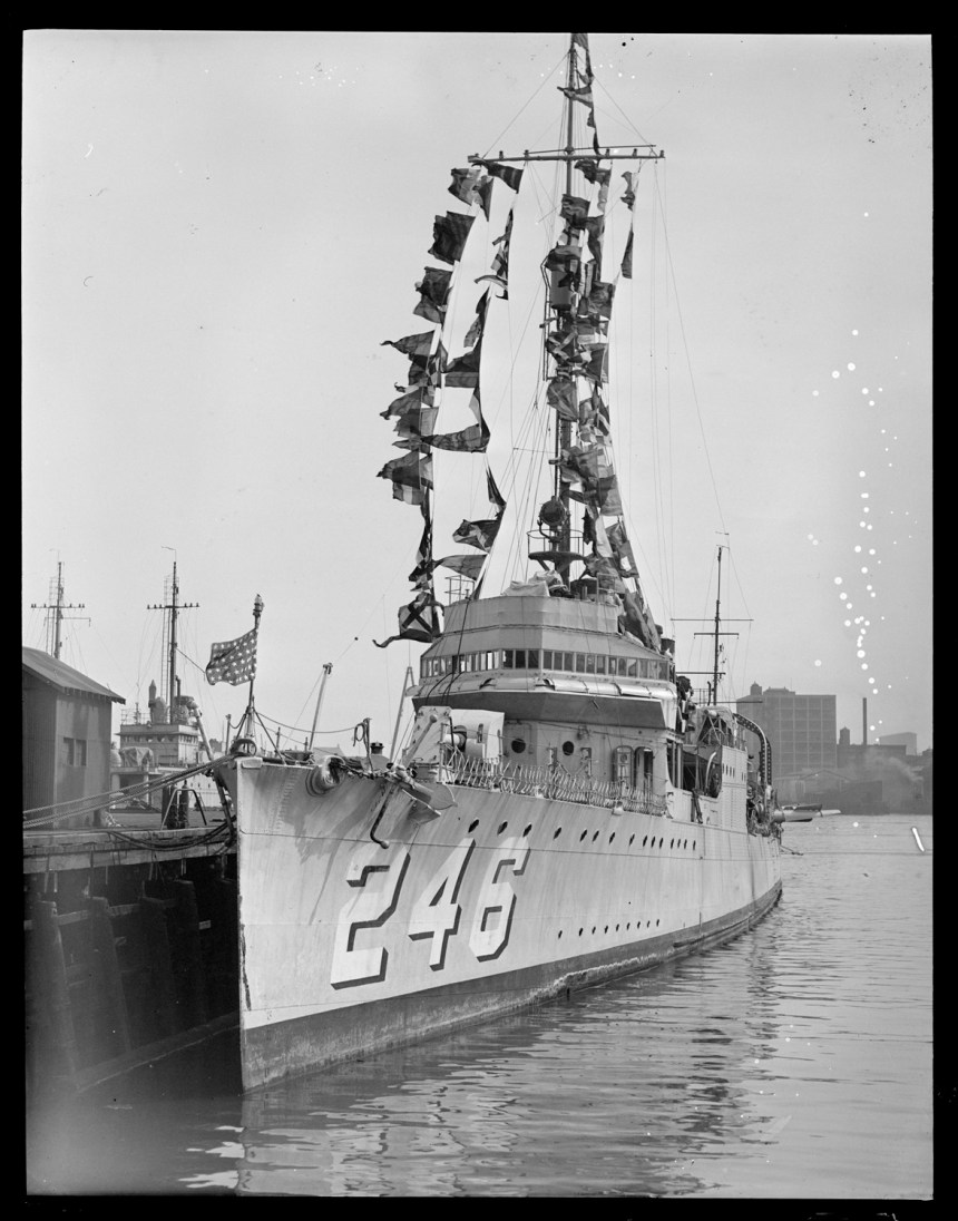 Here we see the Clemson-class “four-piper” destroyer USS Bainbridge (DD-246) with her flags flying at Boston Navy Yard in March 1930, possibly in a nod to the city’s often epic St. Patrick’s Day celebrations.