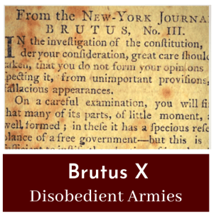 In Brutus X an anonymous author further elaborates on his criticism of a standing army in times of peace.