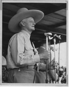 He was known to be a congenial and accessible leader and that sailors loved and respected him. He is pictured here at the “Old Texas Roundup” speaking to his guests – sailors, soldiers and Marines who hailed from Texas. The barbeque was held on…