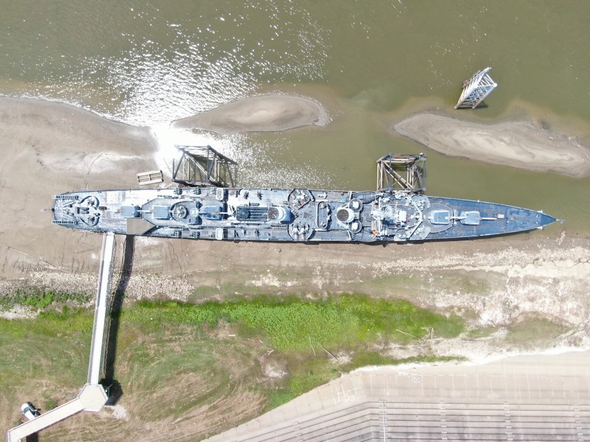 USS KIDD (DD-661) at rest in her cradle in downtown Baton Rouge, LA, USA, where she now serves as a museum — August 2021 (Photo copyright Hunter Svetanics; used by permission)