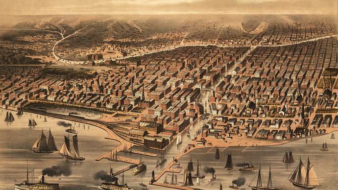 Chicago’s growth in the mid-19th century was unprecedented. The population reached nearly 30,000 in 1850 and was triple that a decade later. Cheap transportation to the outskirts of the city encouraged middle-class dispersal, but poor neighbourhoods near the downtown area were congested; structures there were also built of wood. Serious fires were frequent, but none would compare to the one started on October 8, 1871. Months without rain had parched the city, and a major fire the previous night had exhausted firefighters and damaged equipment.