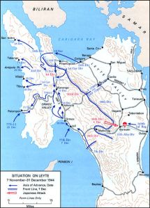 As the ships drew closer to Leyte, the American soldiers already on shore were being hampered by logistical problems which caused a severe delay in capturing the island. When the 11th A/B division arrived on Bito Beach, General Hodge was finally able to move General Arnold’s 7th division and their plans started to come together.