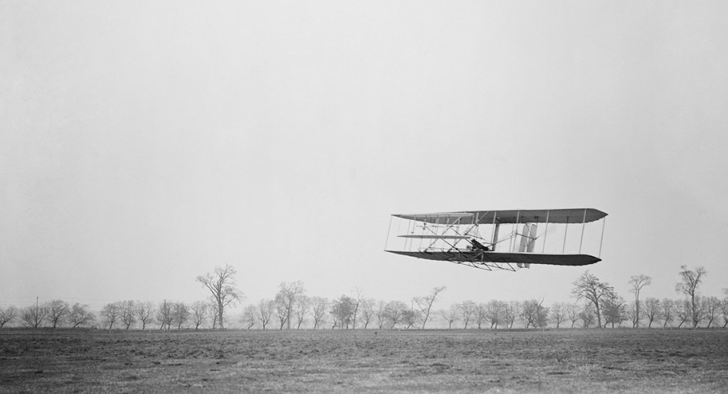 “The date of their first flight was December 17, 1903 […] with Orville Wright at the controls,” Dr. Allitt said. “The plane had a lightweight gasoline engine, turning twin propellers that they’d carved out of wood, mounted at the back of the wings to push rather than the normal later design of forward-projecting propellers, which pull the plane through the air.”