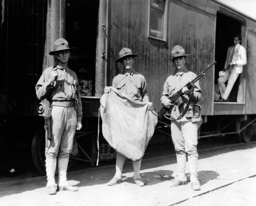 The destructive tester seems to be a Marine, which tracks because the same year this image was taken, President Warren G. Harding sent 2,200 Marines to guard mail delivery across the nation in the wake of a spate of high-profile robberies.