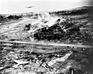 In the Philippines – bombings of Clark Field on Luzon and Sasa on the island of Mindanao. Wasile Bay enemy bivouac areas felt the bombardments from overhead B-24’s and B-25’s. Manila saw the fighter-bombers as shipyards and other airfields and ammunition dumps were blown. US Air Force planes sank the Japanese ship No. 7,Taiko Maruand No. 3,Taiwan Maru, off Masinloc, P.I.