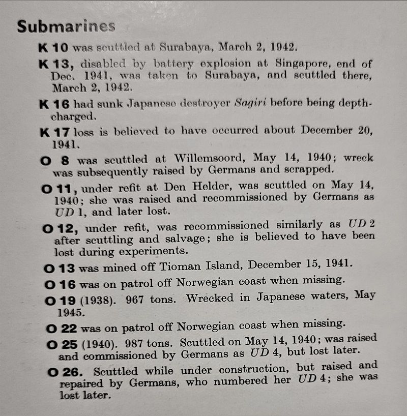 Still, they paid the price as shown here from the 1946 Jane’s list of War Losses.