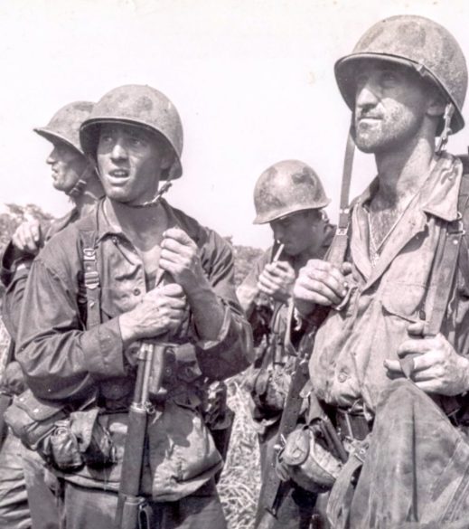Soldiers of the New York National Guard’s 105th Infantry Regiment on Saipan during World War II.