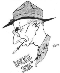 Lt. Gen. Joseph W. Stilwell wasn’t around, so caricaturist Don Barclay, who wanted to meet the CBI Theater commander to sketch his familiar features, did the next best thing – captured them from a photograph.