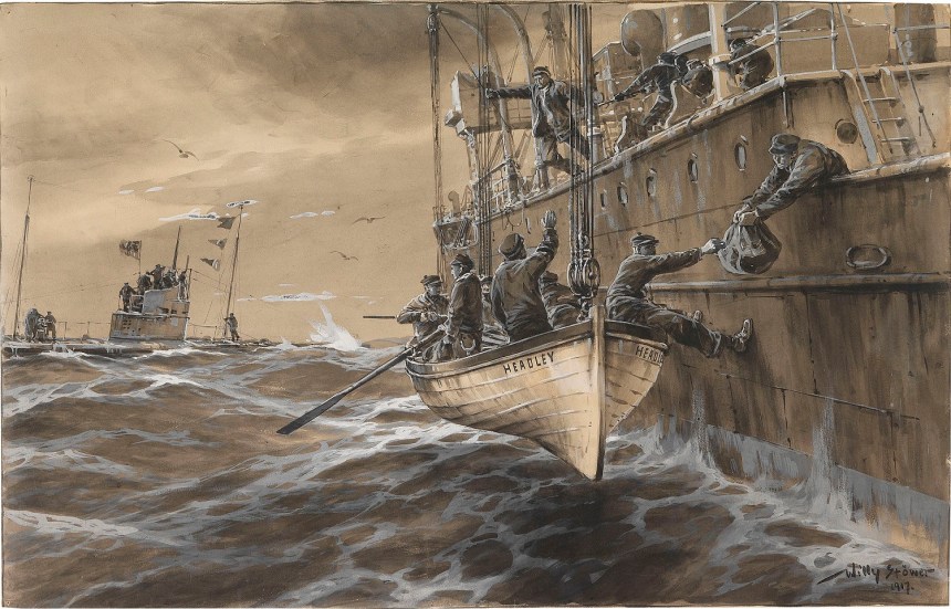 Above we see a circa 1917 Willy Stöwer painting depicting a dashing German U-boat of the Kaiserliche Marine encountering the British Q-Ship Headley at sea, with the crew pretending to abandon ship to sucker the submarine in close enough to be pounded under the waves by hidden Vickers guns and 12-pounders. While the British extensively used Q-ships/Mystery Ships– heavily armed gunboats disguised as merchantmen– despite Stöwer’s propaganda piece, the Germans also had a few Qs of their own during the Great War, one of which is the subject of our…