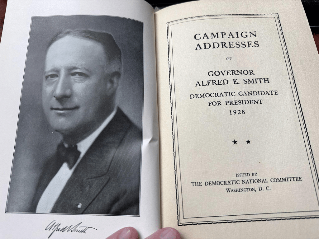 To me personally, Al Smith is one of the most interesting “what if’s” in Presidential history. I actually have a book of his speeches, and I find that he is well spoken and tracked often with the things that I support. The 1928 campaign was one that brought out some of the worst things in America, and at the same time, I often wonder if it would have mattered who was President after 1929?