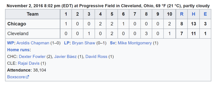 The Cubs regrouped during that delay and came out firing. With runs from Ben Zobrist and Miguel Montero, they quickly took an 8-6 lead. Though the Indians would rally once more with a run in the bottom half, the night, ultimately, belonged to Chicago.