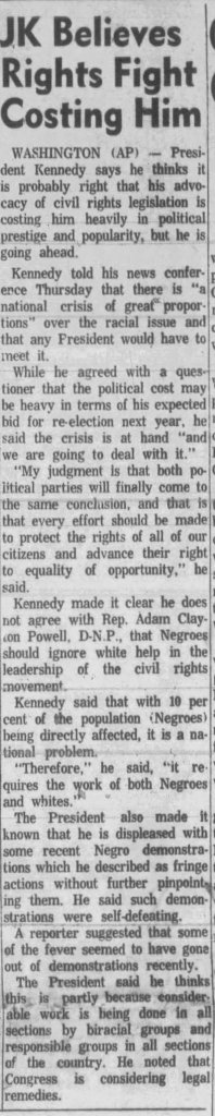 When Kennedy saw the images from those events, something shifted. It wasn’t sudden, but it was firm. His brother Robert, once viewed as even more cautious than Jack, began talking openly about the stain of racism on the national conscience. There was no longer any safe middle ground. Kennedy’s move toward moral clarity wasn’t universally welcomed, but it was noticed. Even the Fort Collins Coloradoan, hardly a national organ of liberalism, printed the president’s civil rights push prominently on its front page on August 1, 1963. They noted the White House’s desire to keep civil rights front and center in the news, to “keep up the steam,” in the words of one aide. That tells you something. There was no backing down.