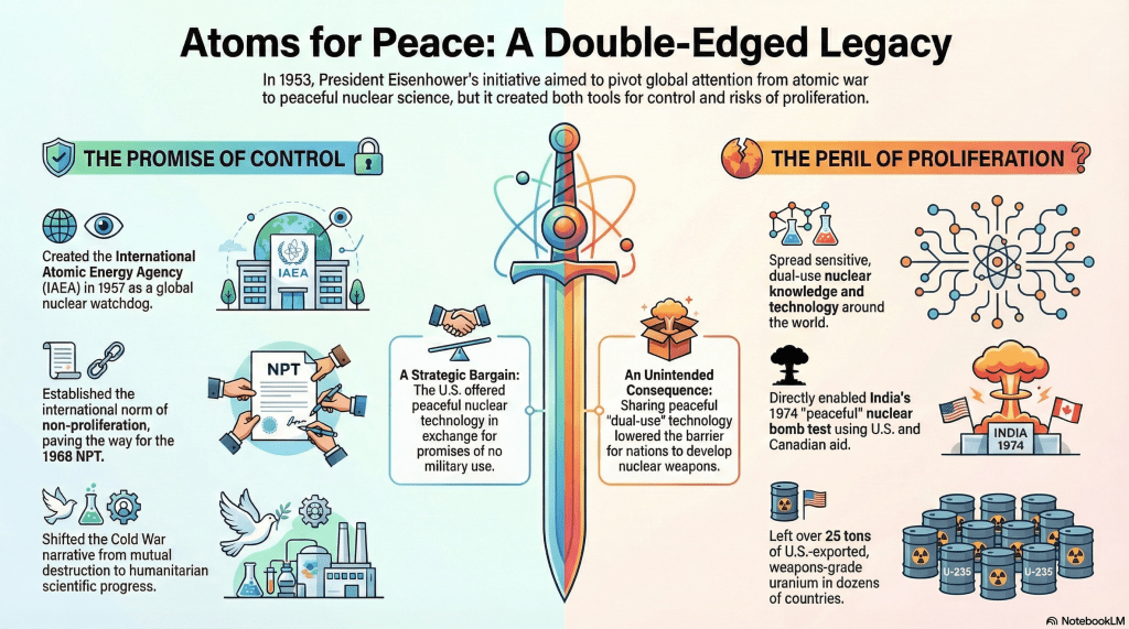 The verdict of history is therefore mixed and honest. Atoms for Peace did not halt proliferation, but it did create the institutions and norms that give the modern world tools to restrain it. It did not prevent the first diversions of peaceful technology toward weapons, yet it eventually built the rules that reduce the likelihood of future diversions. It did not eliminate fear, but it offered a story that could counter despair.