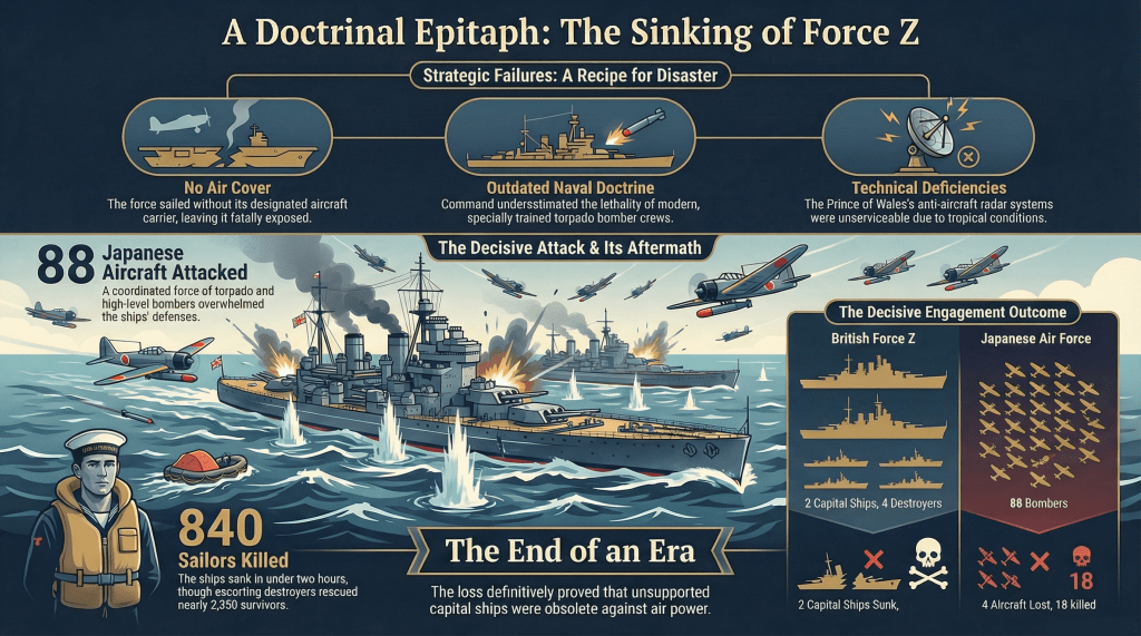 There are moments in history when the noise of the present suddenly stops and the quiet truth of the future steps forward. Sometimes that truth arrives with a whisper and sometimes it arrives with the falling shadow of aircraft whose pilots have spent years training for the exact task at hand. On December 10, 1941, off the coast of Malaya, a British admiral who believed in the old order of things found out that the age of the battleship had died two generations earlier than he wished to admit. The obituary was written in the oil slick that spread across the South China Sea as HMS Prince of Wales and HMS Repulse slipped beneath the waves. It was an ending so stark and so final that even the most stubborn romantics of naval warfare had to accept that the world had changed. The sea was still the same. Human courage was still the same. The machines were not.
