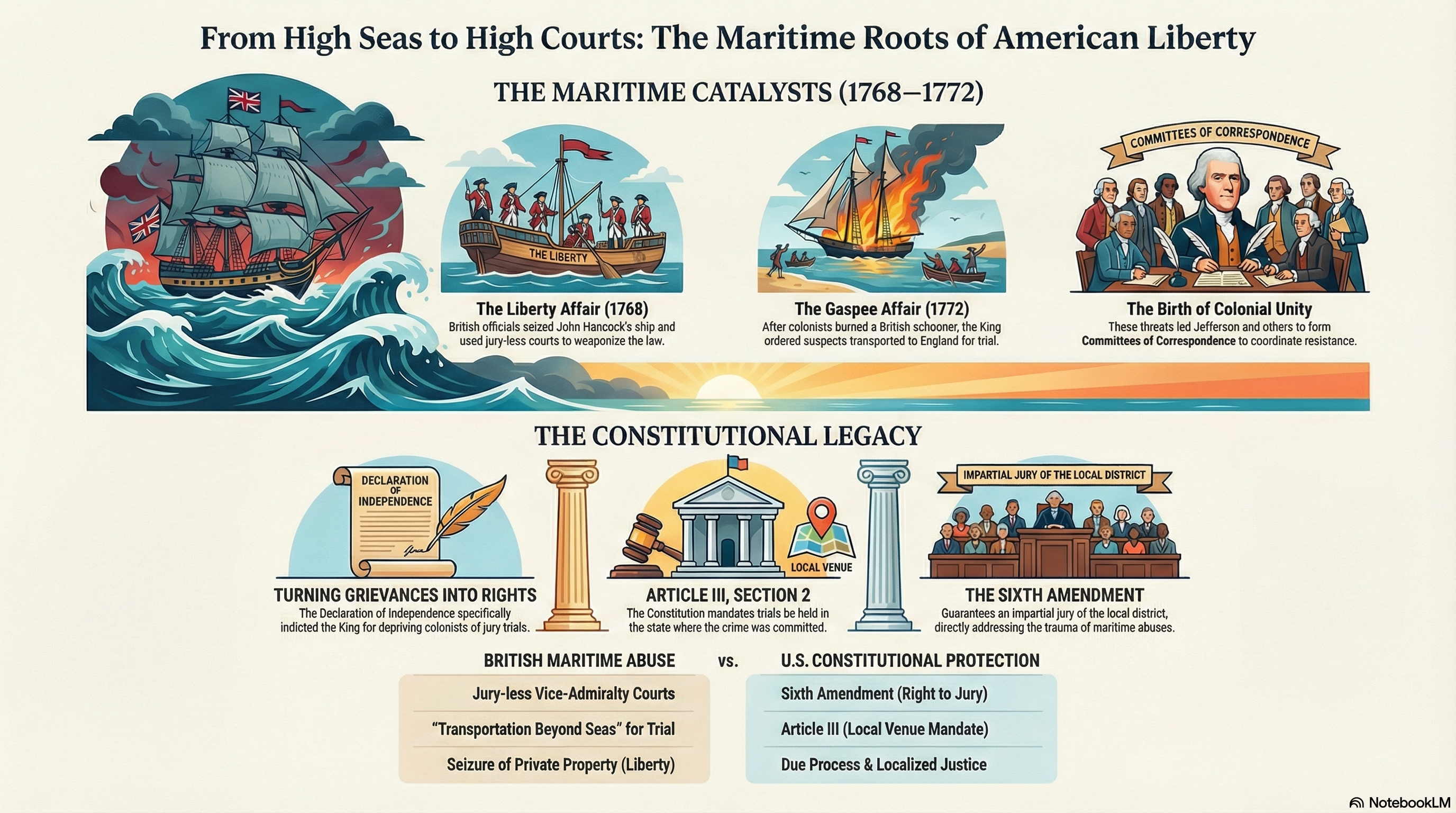 The Liberty and Gaspee affairs teach a lesson that remains uncomfortable even now. The structure of a court matters as much as the law it enforces. A perfectly written statute applied by a hostile or distant tribunal can become an instrument of arbitrary power. Due process is not a slogan. It is an architecture.