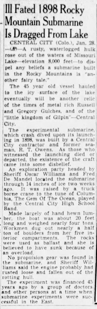 The newspapers called it the Rocky Mountain submarine, sometimes the Nautilus, sometimes simply the mountain sub. One wire service report described it as dispelling any remaining belief that a submarine in the Rockies was another fairy tale, which tells you how long the story had been floating around without ever quite surfacing . Locals had joked for years about the longest crash dive in history, a vessel that went straight down on its maiden voyage and never came back up. Now it was there in plain sight, hauled onto the ice with its ballast rocks still rattling inside, stubborn evidence that someone, once, had meant this thing to work.