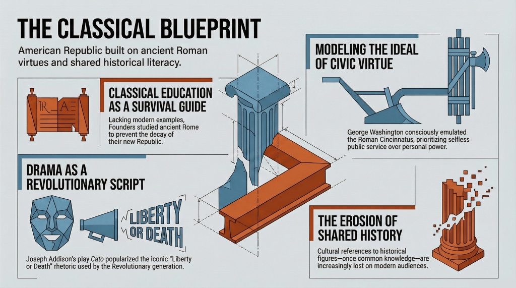 Because if you want to understand the American Founders, you have to step into a world where history was not optional. It was the air they breathed. These were men who read Livy and Tacitus the way we scroll headlines, searching not for amusement but for survival. They had no modern republic to imitate, no friendly guidebook waiting on a shelf. So they turned to Rome, not as tourists, but as investigators at the scene of a very old crime.