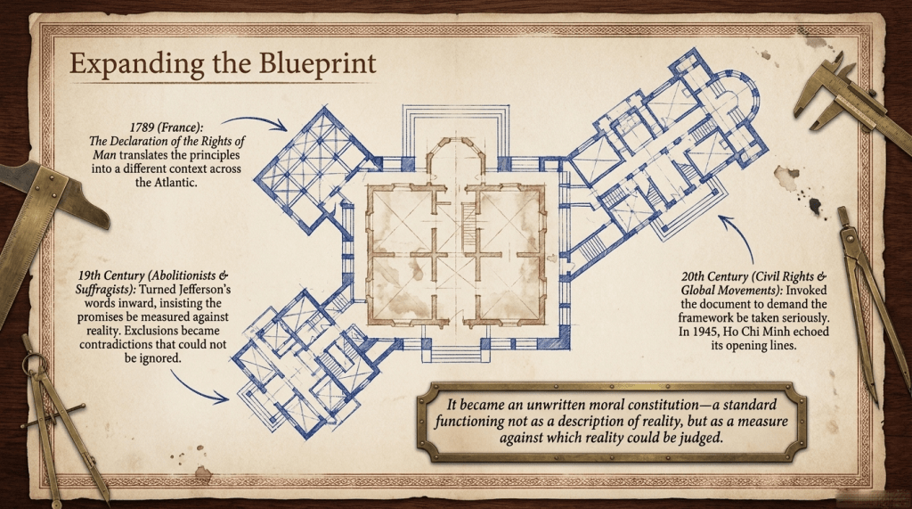 And yet, they did not destroy the document. In a strange way, they strengthened its long-term impact, because they created pressure points. Places where later generations could press, not from outside the framework, but from within it. If the principles are taken seriously, then the exclusions become harder to defend. If the logic holds, then it can be turned back on those who would limit it.