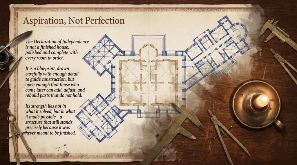 And once you see the structure for what it is, you begin to understand why it has lasted. Not because it was perfect, and certainly not because it solved every problem it addressed, but because it was built to endure strain. The logic is not decorative. It is load bearing. Principles justify grievances. Grievances justify independence. And independence, once claimed, demands something more than celebration. It demands explanation that can stand up long after the moment has passed.